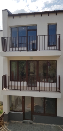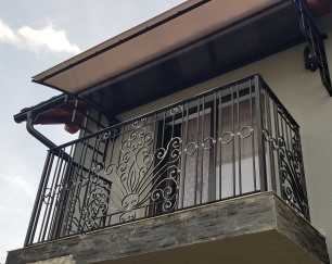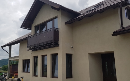 Balustrade exterioare locuinta, din panouri metalice cu elemente decorative.