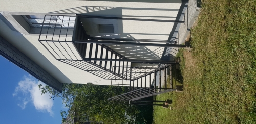 Balustrade exterioare pentru terasa si scari si copertina din policarbonat.